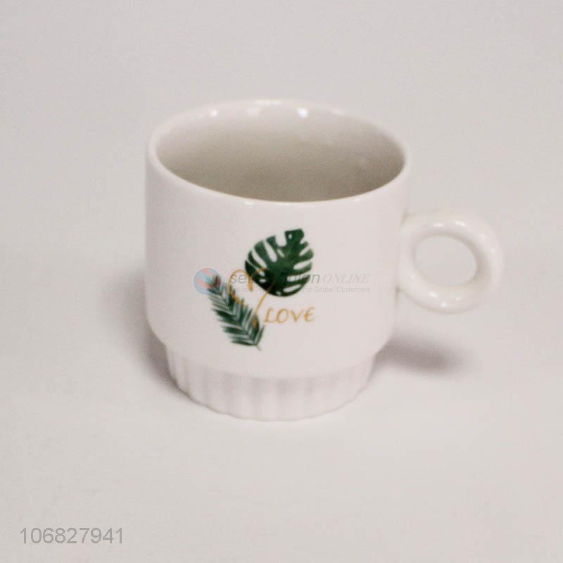 China factory green plant leaf pattern ceramic cups