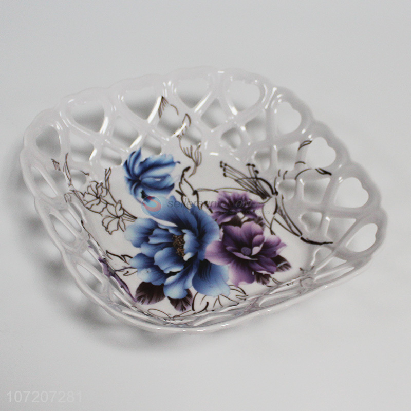 Unique design flower printed hollowed-out melamine fruit plate fashion melamine ware
