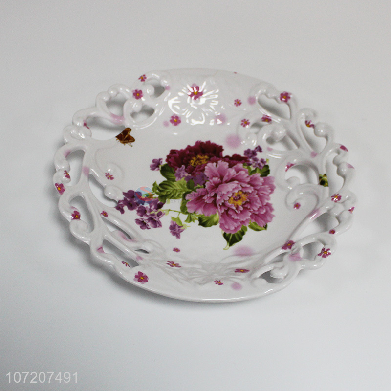 Attractive design flower printed hollowed-out melamine fruit plate for decoration