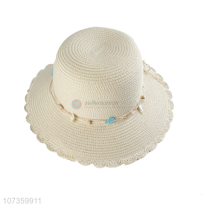 Good Sale Summer Straw Bucket Hat With Decorative Seashells