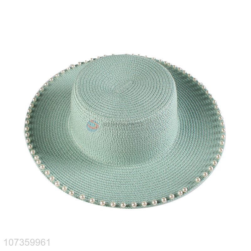 New Arrival Round Top Large Brimmed Hat Beach Hat With Pearls