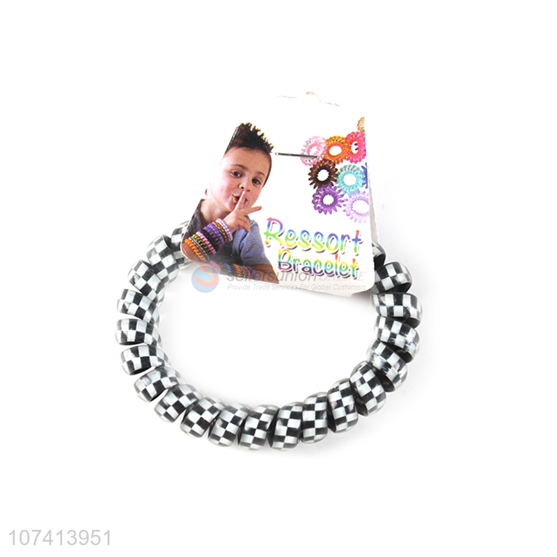 Hot selling checks printed elastic telephone wire bracelet for kids