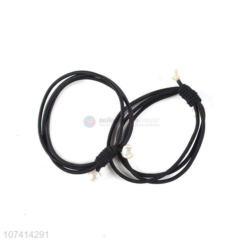 Good supplier black hair ring elastic hair rope with pearls