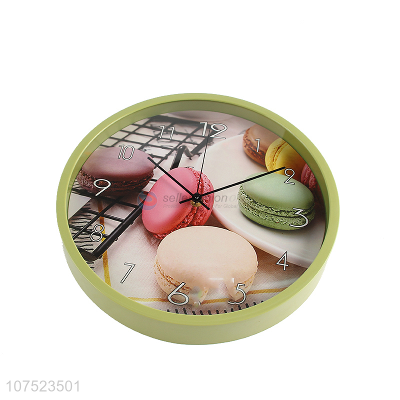 High quality macarons pattern wall clock no-punch quartz clock for classroom decoration