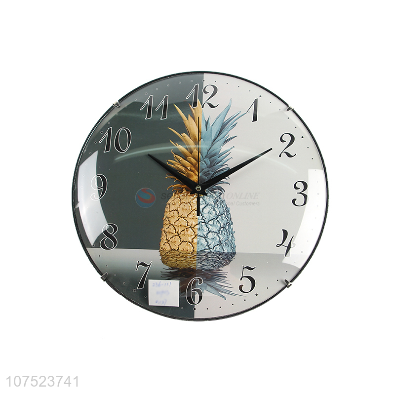 New products modern pineapple pattern silence wall clock living room plastic wall clock