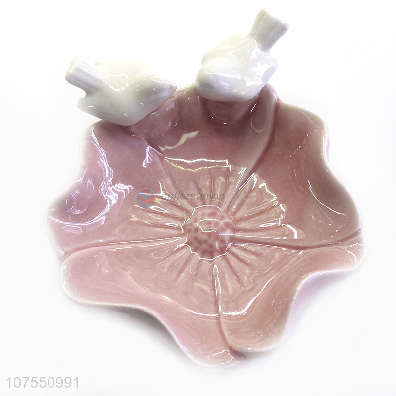 Factory Price Cheap Flower Bird Design Ceramic Ring Holder Trinker Tray Dish
