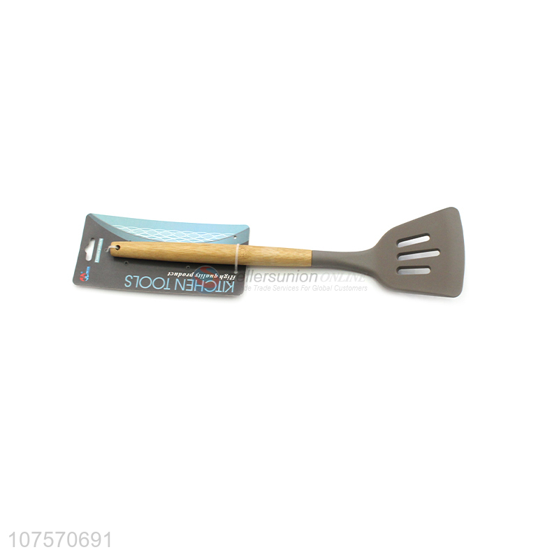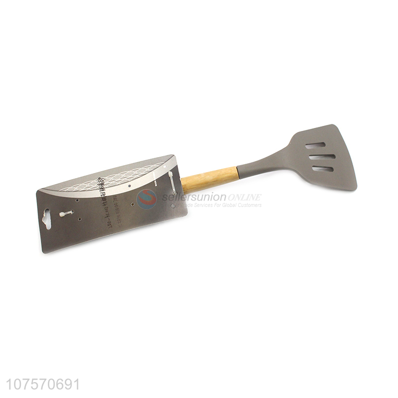 Competitive Price Bamboo Handle Food Grade Silicone Slotted Shovel