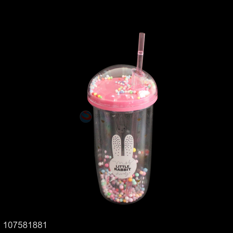 • Cheap price plastic double wall straw water cup water bottle