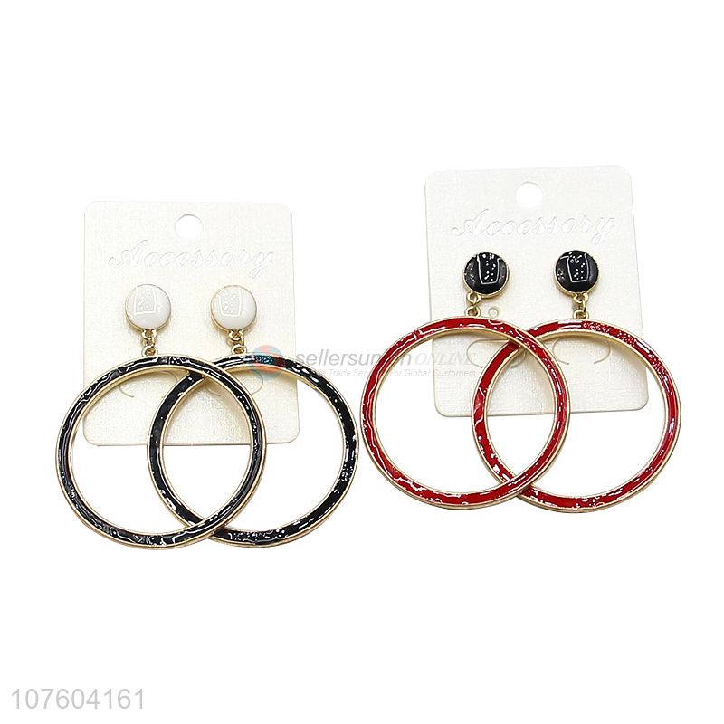 Hot products round enamel alloy earrings metal hoop earrings for women
