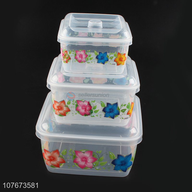 New Design 3 Pieces Flower Pattern Square Preservation Box Set For Kitchen