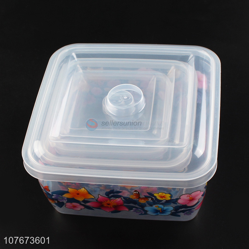 Fashion Printing 3 Pieces Transparent Plastic Food Fresh Container Preservation Box Set
