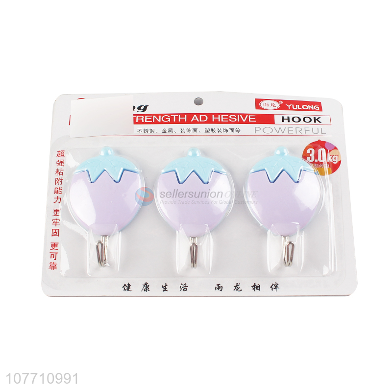 Best selling cute strawberry shape sticky hook punch free wall hook