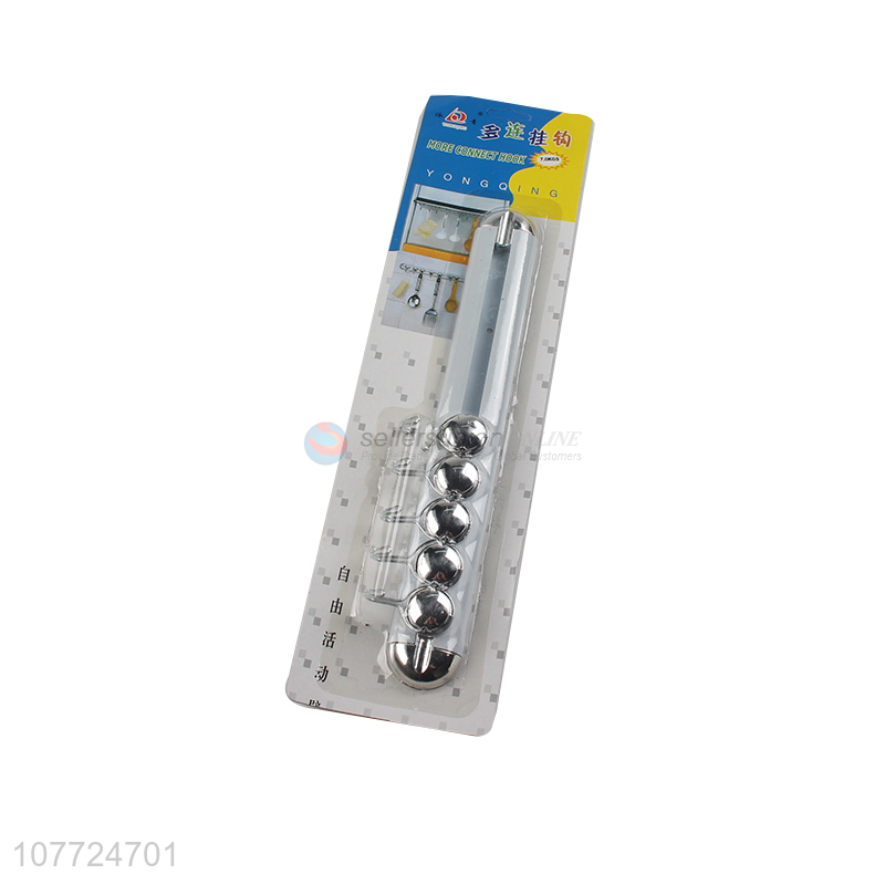 Factory price 5 heads movable metal sticky hook kitchen utensil hanger