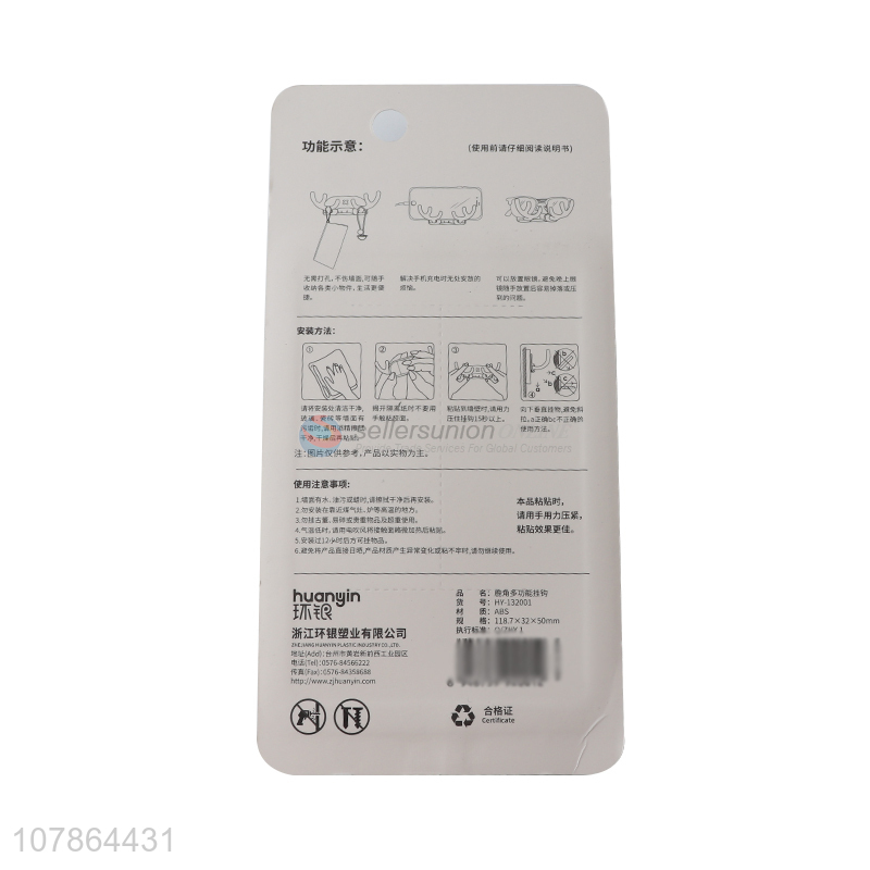 Latest arrival creative deer horn sticky wall hook for bathroom