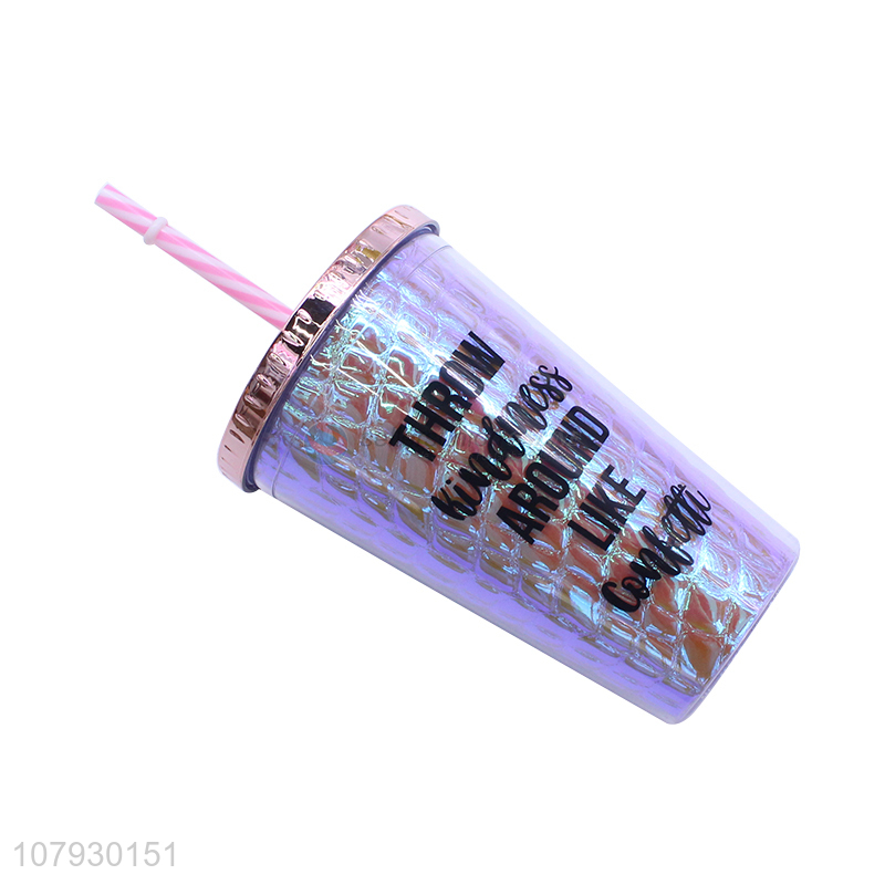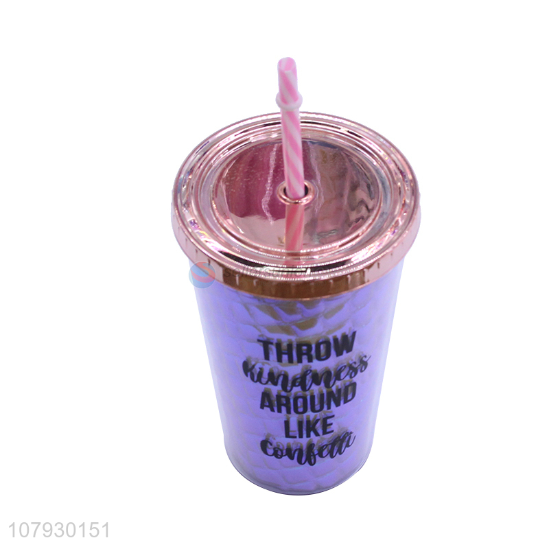High quality fresh double walls plastic water cup with straw & lid