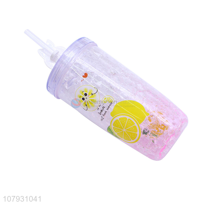 China factory ice gel cooling tumbler plastic water cup with drinking straw
