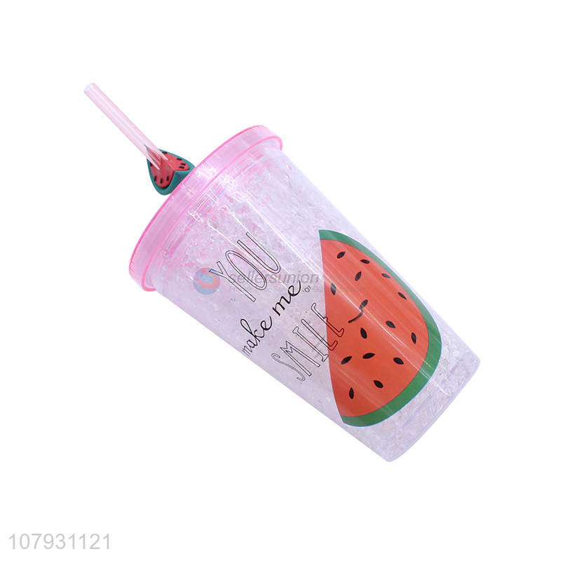 Popular product double walls platsic juice mug ice gel cooling cup with straw