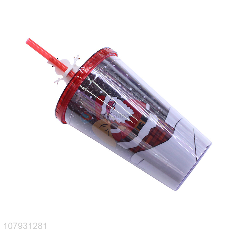 New product non-toxic plastic Christmas drinking cup tumbler with straw & lid