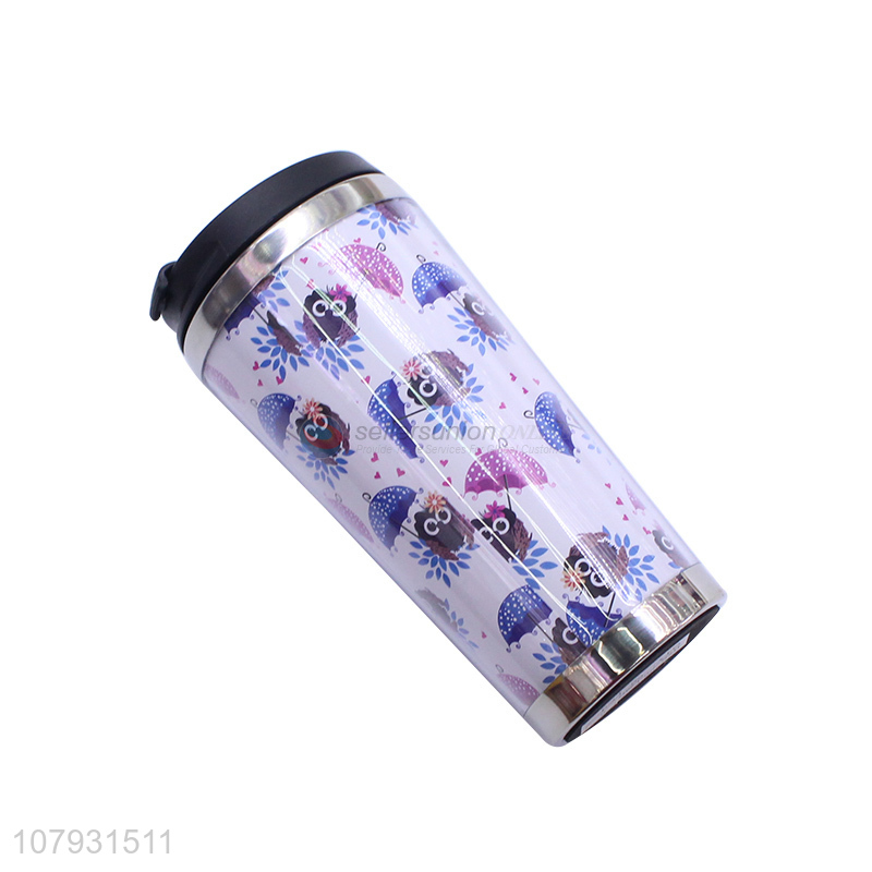 New arrival cartoon printing reusable double-walled tumbler coffee cups with lid