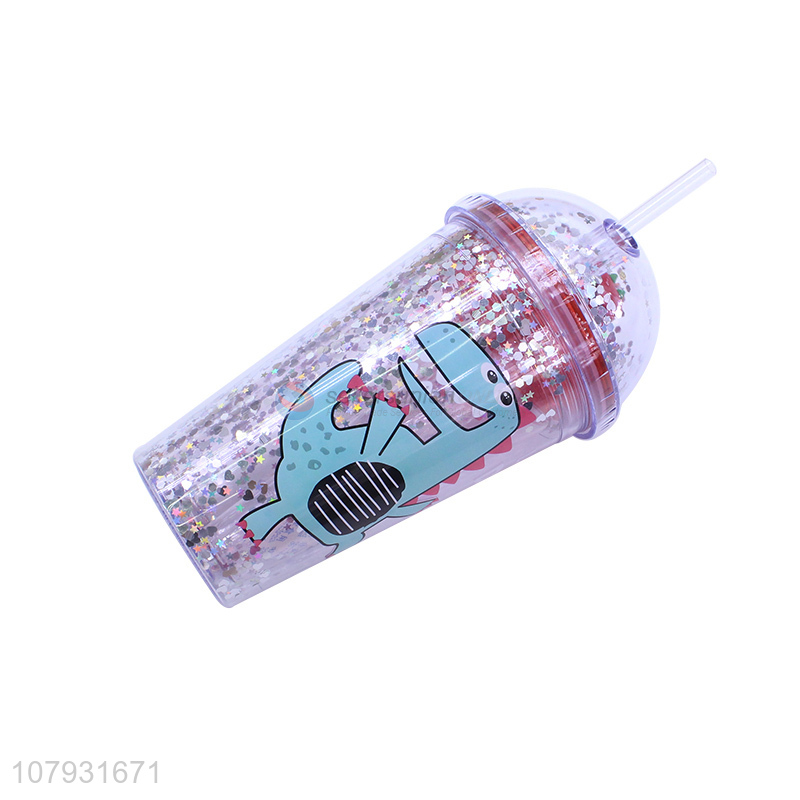 Wholesale cartoon dinosaur pattern plastic juice water coffee cup with straw