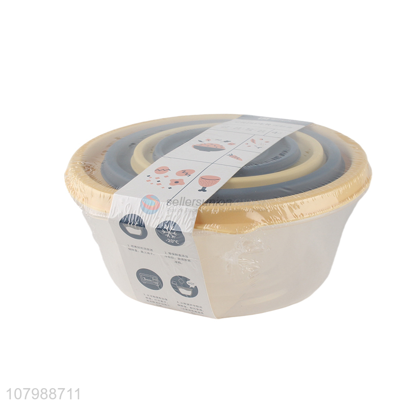 Online wholesale 4 pieces round plastic kitchen food storage box preservation box