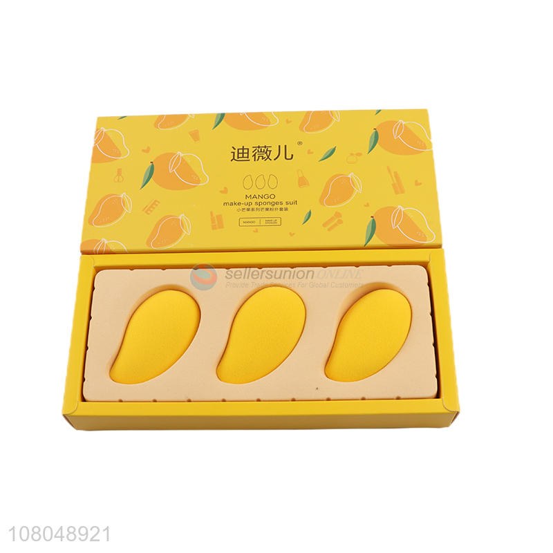 Low price wholesale yellow makeup powder puff set for ladies