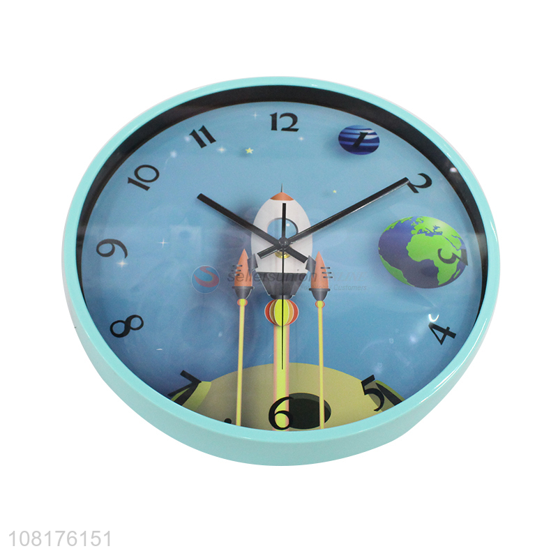 Wholesale creative round rocket wall clock for bedroom decoration