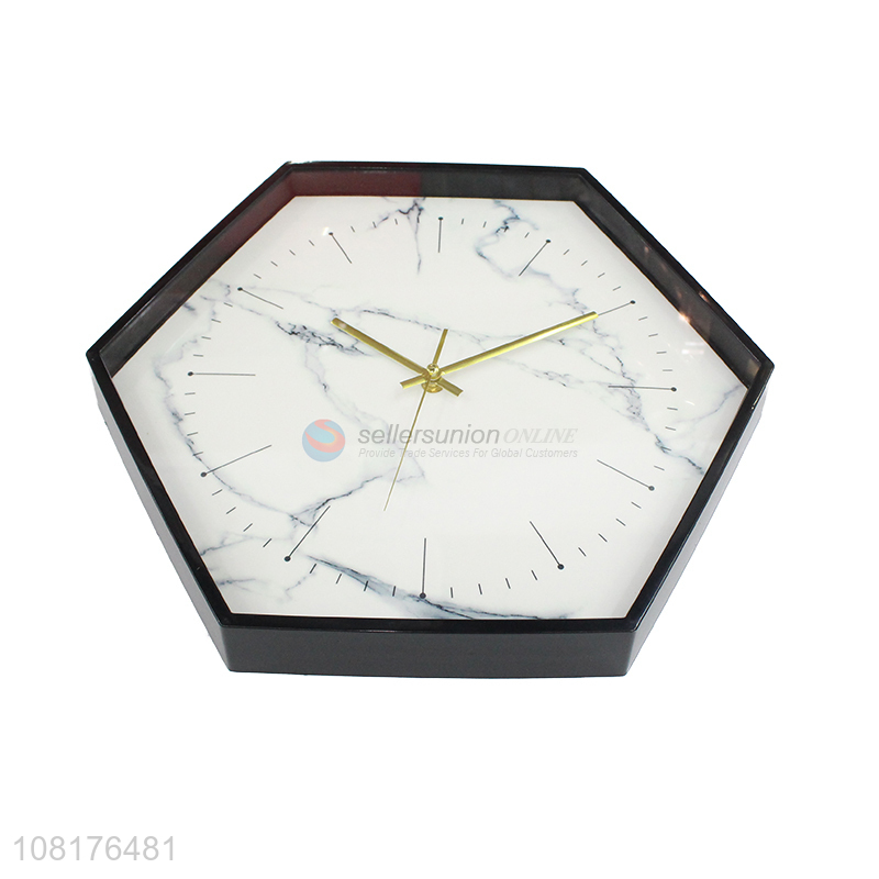 Hot selling stylish hexagonal marbling wall clock for home decoration
