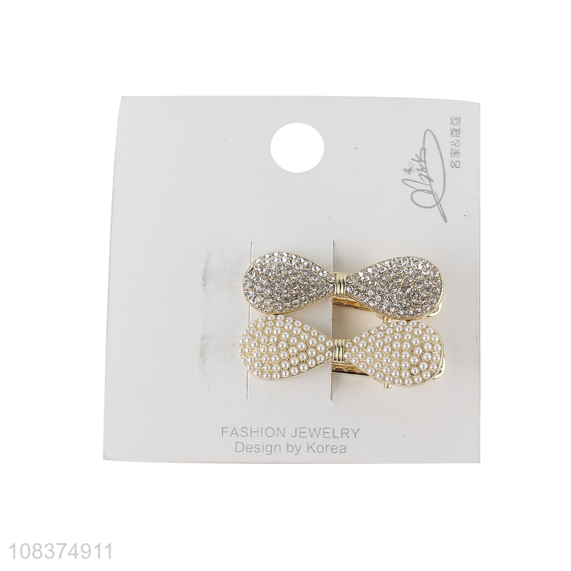 Latest design 2pieces pearl rhinestone hairpin hair clips