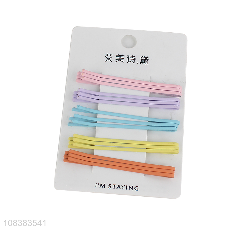 Low price 15 pieces frosted colorful bobby pins metal hairpins for women