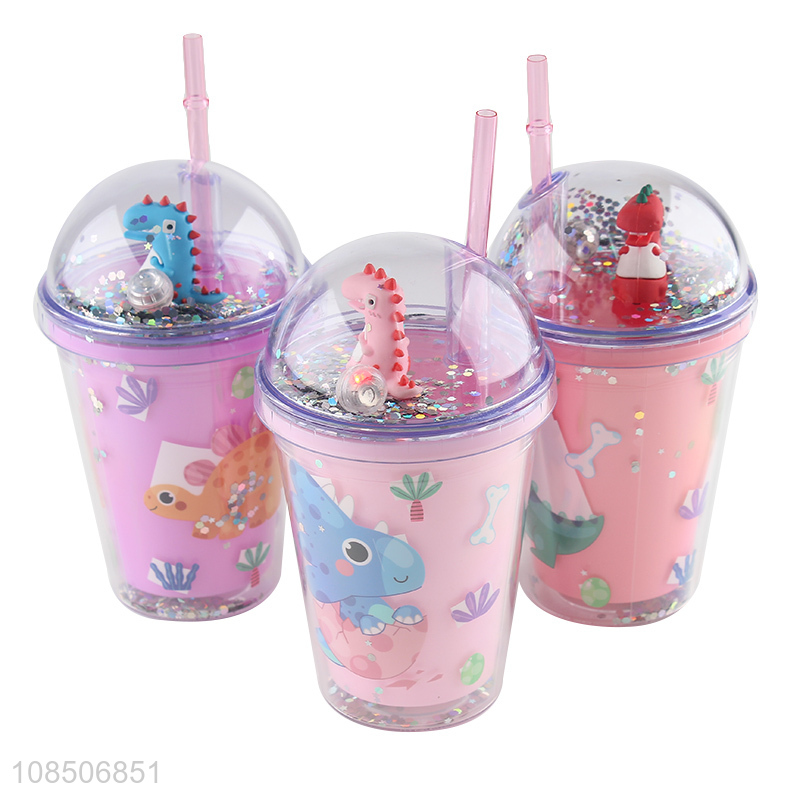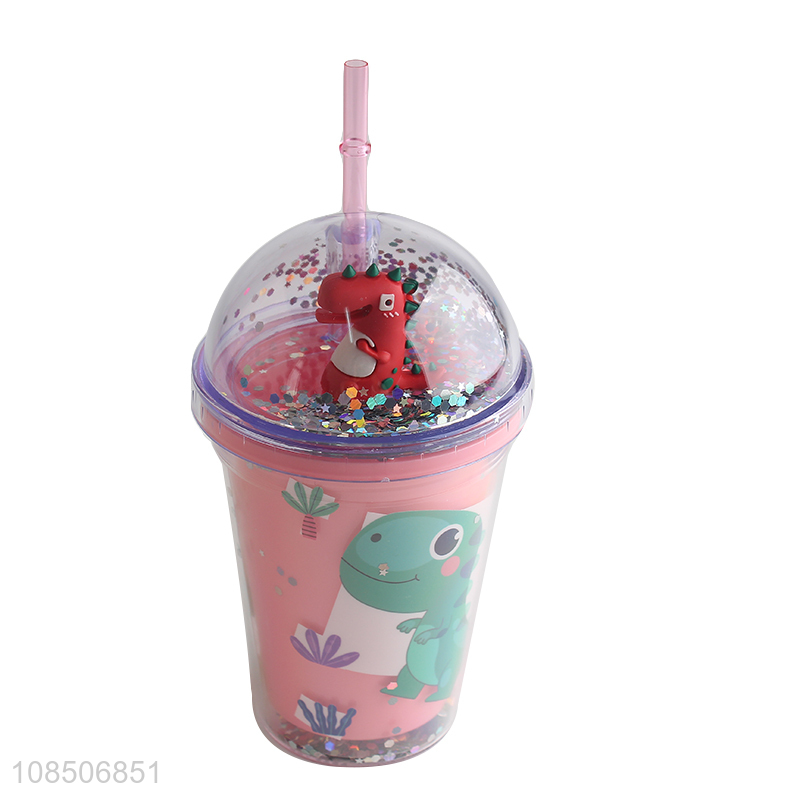 Factory price cartoon 450ml plastic water bottle with straw and lid