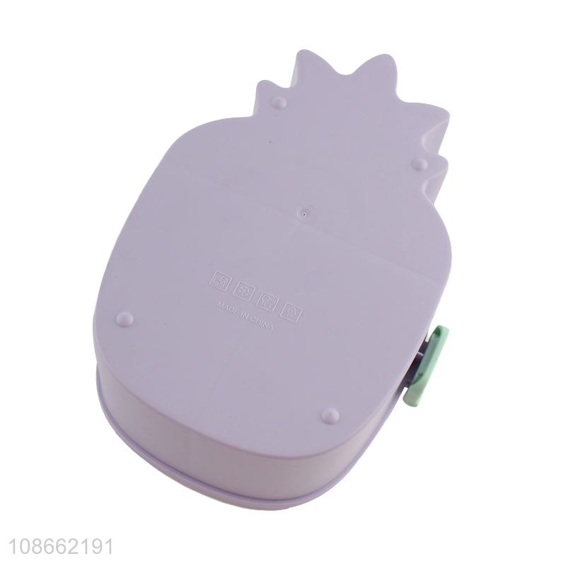 New arrival cute pineapple shaped plastic lunch box with cutlery for kids