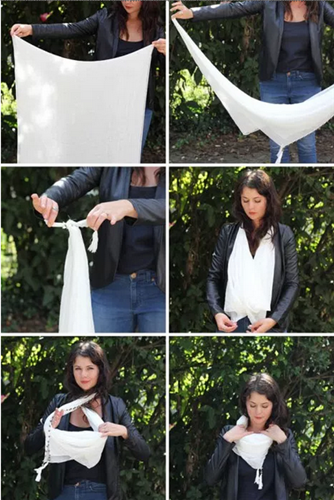 With the development of the society,more and more people more and more people began to follow the fashion,especially the women.And the scarves are already be the favorite fashion accessories for the women.Now it's most definitely not just for the colder weather. It's amazing and can take almost any outfit up a notch. A stylish ways of tying scarf is the perfect way to add extra interest to your outfit.Here are 5 different scarf tying ideas.