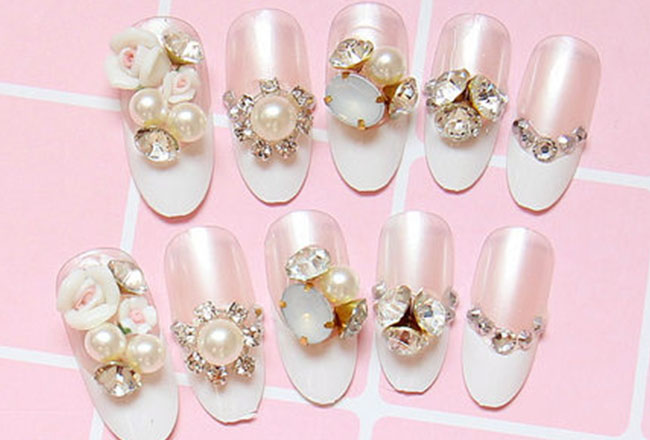 Repeat with the remaining nails. One by one, glue each nail on using a dab of glue. Remember to press each nail for 10 seconds to make sure they are sealed tight against your real nails. See, it’s very easy to decorate your nails. Just do it and own a good mood.