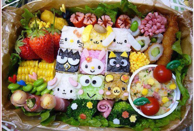 Add little faces and edible animals to your box. Give cherry tomatoes sesame seed eyes. Turn a hard-boiled egg into a bunny with cabbage-triangle ears. Making lunch cute is a big part of bento-box making.